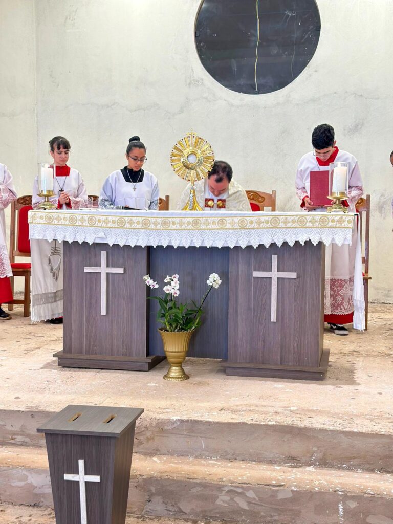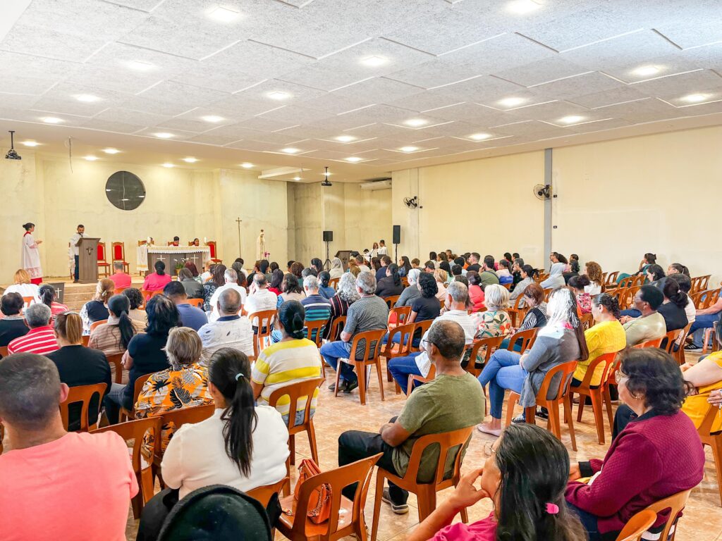 A programação teve início com a Santa Missa às 7h30 na matriz paroquial, presidida pelo pároco Padre Luís Carlos, SAC. A celebração reuniu os fiéis de modo paroquial, fortalecendo os laços de fé de nossa paróquia.